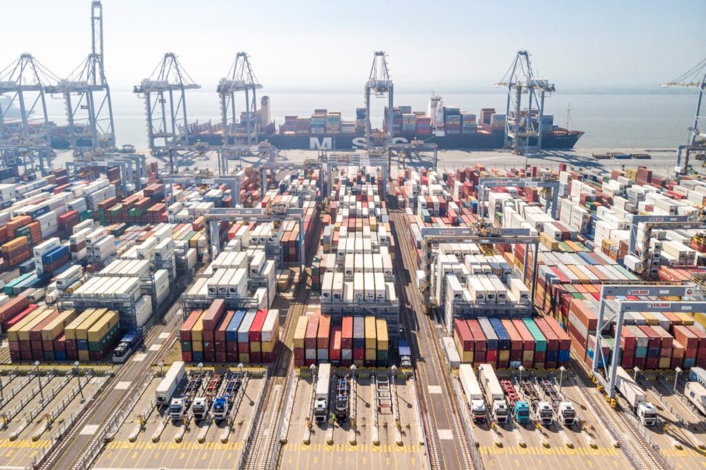 DP World London Gateway Port uses robotic, automated stacking cranes to assist with managing containers as they are moved from ship-to-shore cranes and onto and off of trucks and trains. “